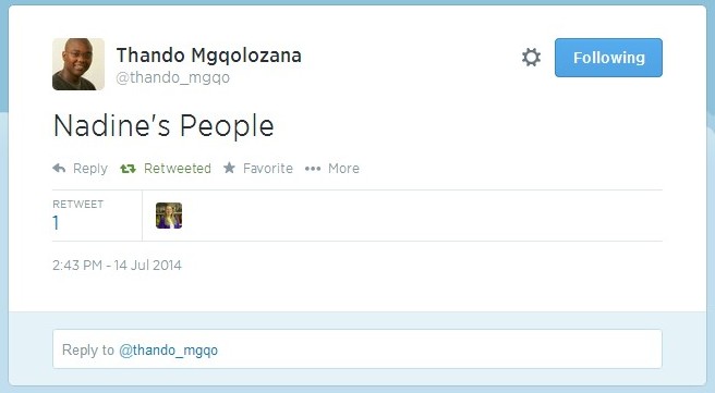 Novelist Thando Mgqolozana tweeted this morning, “Nadine’s People,” a play on one of her most popular novels, July’s People.